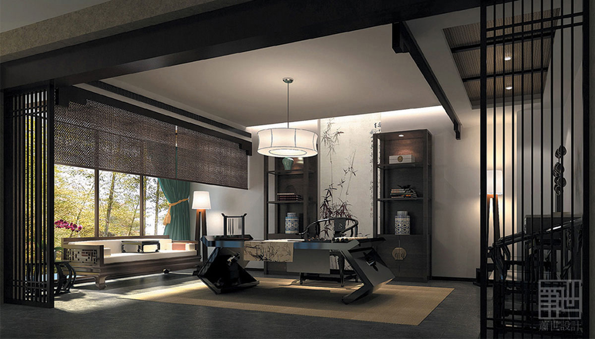 墨苑總建筑面積約4960平米,由大堂、會議室及客房等組成。根據業主要求,結合當地地域特色文化,我們確立了以竹為主題,結合傳統書畫為設計的表現形式。著重傳達一種濃厚的文化氣息和休閑度假氣質,將竹的主題通過多種手法進行巧妙的演繹。大堂針對建筑原空間封閉的弱點,大膽將非承重墻局部敞開,與外部自然景觀形成對話。整個空間以《蘭亭序》為線索,通過天花的竹形成燈具和墻面的浮雕造型,著力體現《蘭亭序》中“崇山峻嶺,茂林修竹”、“群賢畢至,少長咸集”的意境。與建筑周邊環境(多山林修竹),使功能(會議)高度契合并使空間性格獨具一格。會議室根據面積大小和功能細分分別命名,大會議室為天朗,著重體現空間的開敞感和《蘭亭序》中“天朗氣清”的氛圍;中型會議室以“流觴”為主題,體現交流的樂趣;小會議室命名為“惠風”,主要針對空間封閉的弱點用較輕松的手法予人以休閑感。客房通過對原空間流線的重新梳理,套間普遍增大了衛生間的使用面積,使客房品質感得以極大提升。在設計語匯的使用上以新中式為主,在休閑舒適的前提下著力營造傳統書畫的藝術意境,主要構想以“竹”為主題,貫穿各樓層,通過地毯、墻紙等軟裝傳遞“墨竹、朱竹、雪竹”等多種竹文化意象。讓旅客在舒適的環境中感受傳統文化的熏陶。
