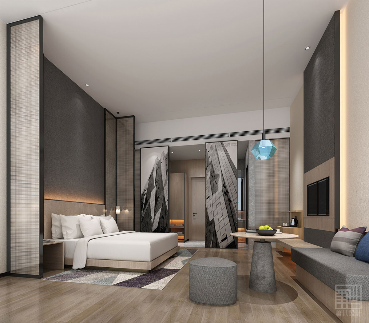 本案地理位置優(yōu)越,靠近深圳新會展中心區(qū)。設計師基于此打造了這一森系自然氣息縈繞的酒店空間,將一種返璞歸真的生活方式呈現(xiàn)于都市人眼前,令人們在享受都市生活高度便捷的同時,來到這里也能如同置身大自然一般放松與閑適。通過在城市中創(chuàng)造了一系列的“迷你森林”酒店,綠色將會遍布整個城市。我們十分重視環(huán)境保護,即便是在客房空間中也盡可能地融入綠色的設計元素,也借此將“綠色建筑”的理念傳播給前來的消費者。梧悅酒店的客房設計靈感來源于永恒而優(yōu)雅的新藝術(shù)(Art Nouveau)風格,它以簡潔而不張揚的形式重新定義了高雅與舒適的含義——恢宏而經(jīng)典,簡單卻不冷清。