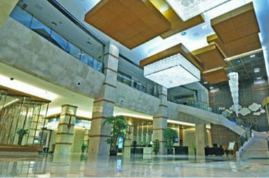 建筑面積28000平方米,是蘄春縣第一酒店、第一高樓,達(dá)到17層,純高級(jí)套房200余間。通過(guò)當(dāng)?shù)匚幕氐耐诰蚣疤釤挘浞謶?yīng)用到室內(nèi)空間。