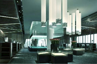 生態(tài)酒店內(nèi)部廣布植物,需要大面積的采光;表現(xiàn)自然山水的氛圍,注重陽(yáng)光與園林植物形成自然的光影效果,提高表現(xiàn)力。